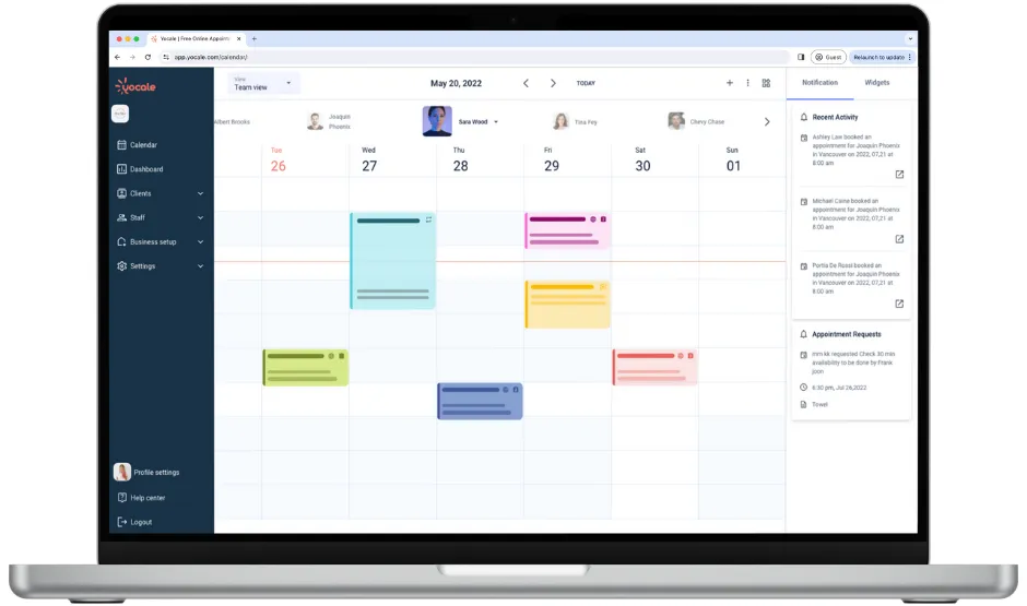 After exploring different options, Angela discovered Yocale. It gave her the infrastructure to efficiently run the salon by empowering individual team members to manage their own clients, appointments, and availability. With Yocale’s dashboard she got an overview of how busy everyone was, what her most lucrative services were and what her busiest days are. No more manual number crunching, Angela got the data to make decisions about what comes next for Ella Bonita.